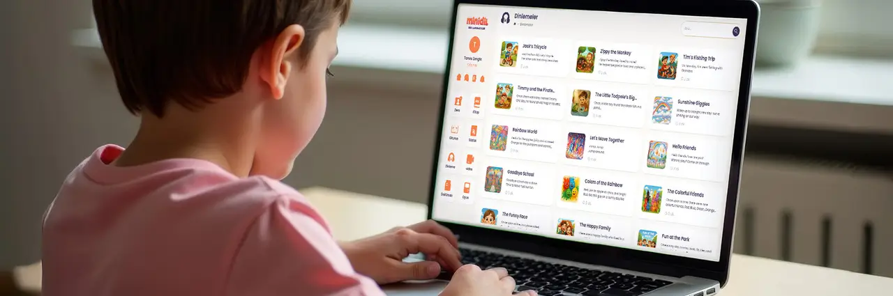 Çocuklar Minidil platformunda derslere bilgisayar veya tablet üzerinden katılır. Kamera ve mikrofon kullanımıyla öğretmenle sürekli iletişim halinde olurlar.
